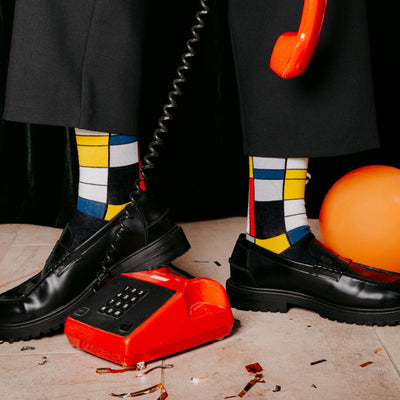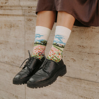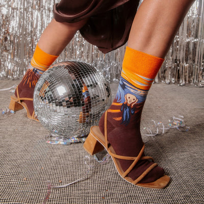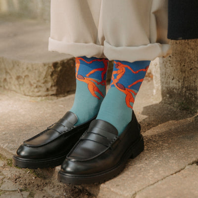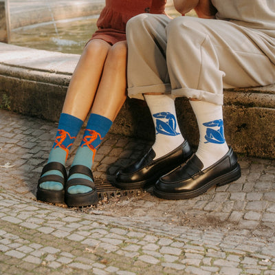 De Kus sokken geïnspireerd op Gustav Klimt's meesterwerk, gemaakt van biologisch katoen.Der Kuss