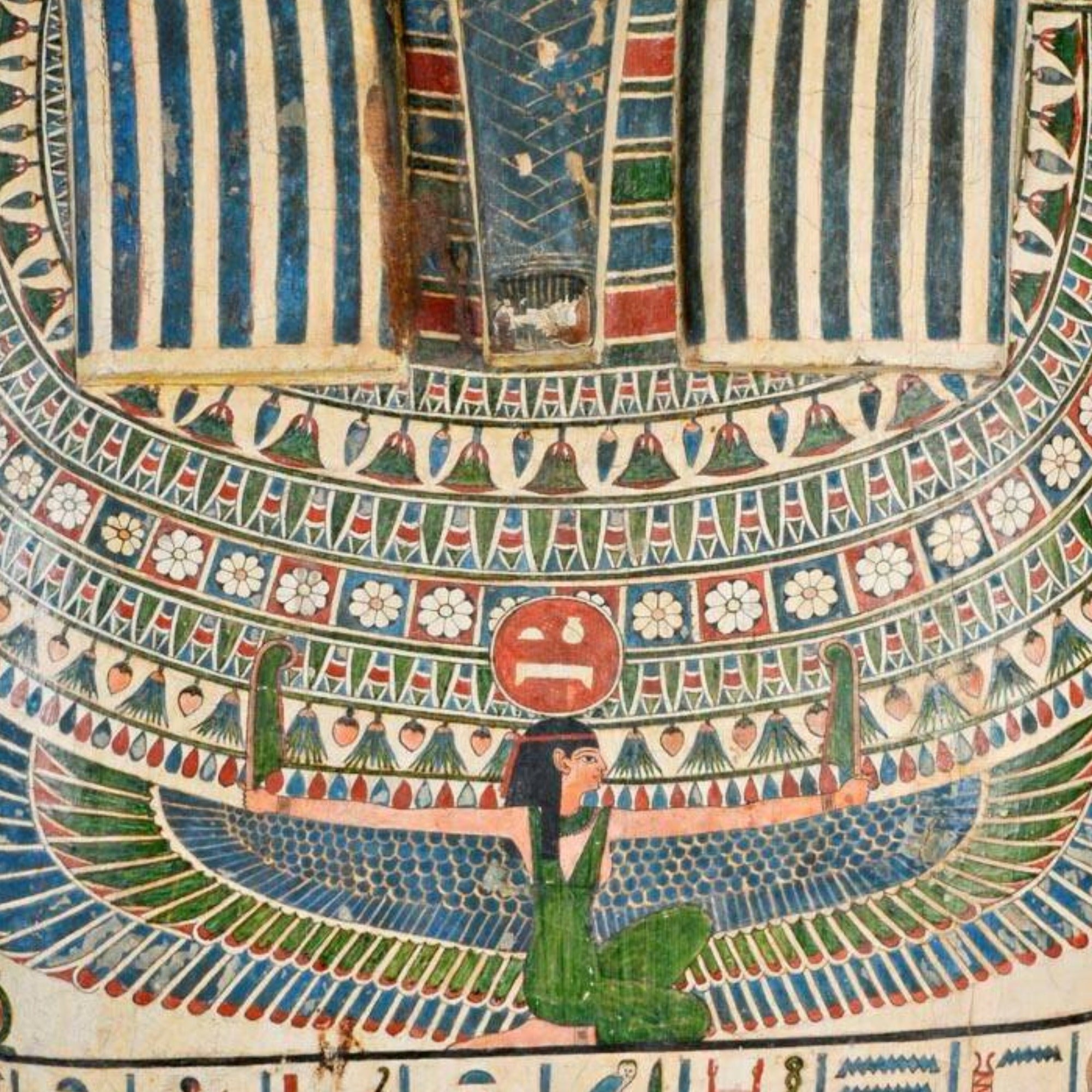 Die Söhne des Horus bewachten seine Organe. Heilige Vögel trugen Botschaften der Götter. Der breite Kragen um seine Schultern symbolisierte seinen Übergang zum Göttlichen.