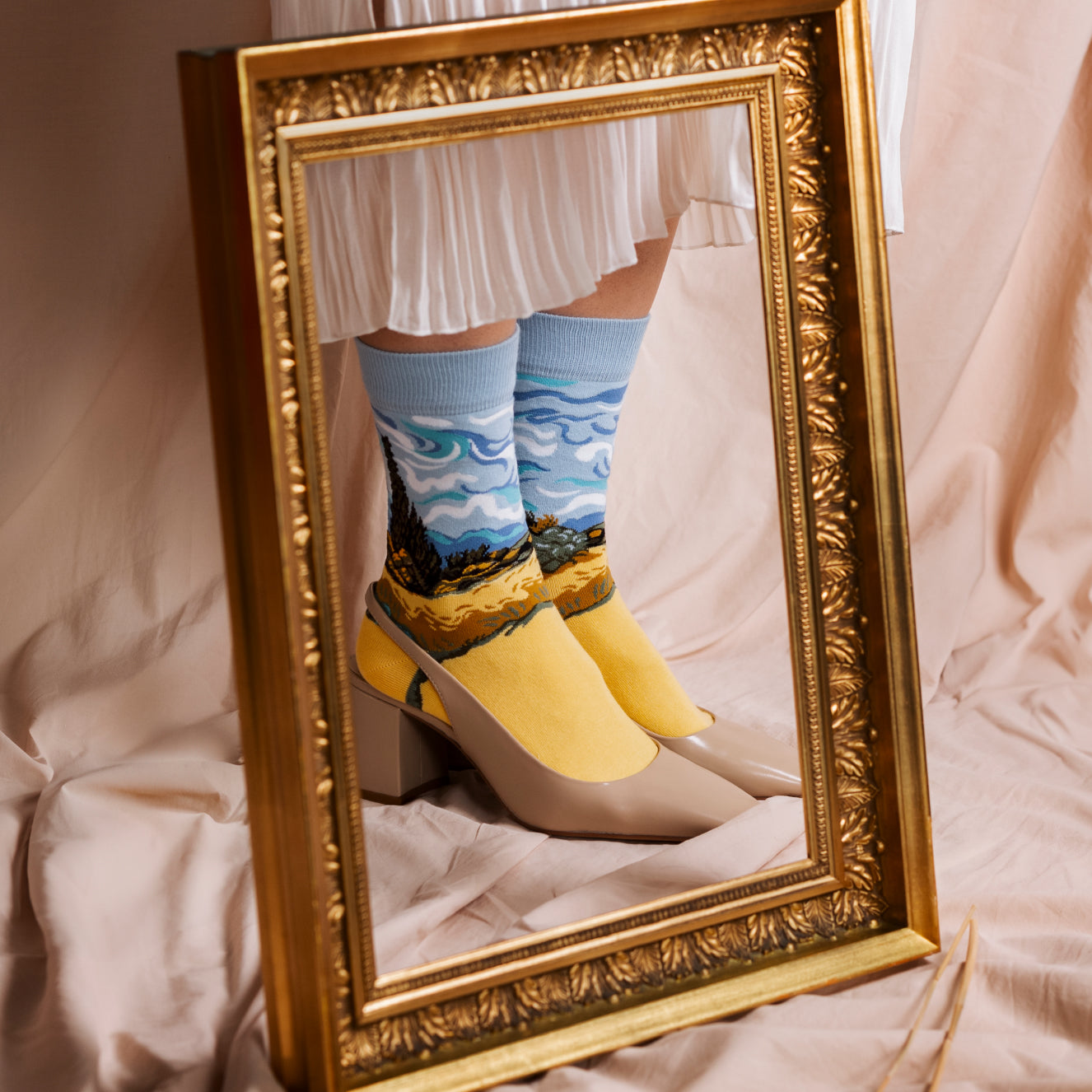 Kunst gehört nicht nur in ein Museum – sie verdient einen Platz in deinem Alltag. Seit 2020 entwerfen wir Socken, welche die Meisterwerke zu deinen Füßen ein Stückweit zum Leben erwecken. Mit einem Auge für Nachhaltigkeit und Qualität stellen wir Produkte her, die im Alltag nicht nur hervorstechen, sondern auch wunderbar sitzen. Etwas Besonderes im Üblichen entdecken - genau das ist die Essenz der Kunst und genau das ist die Essenz von Kunstsokken.