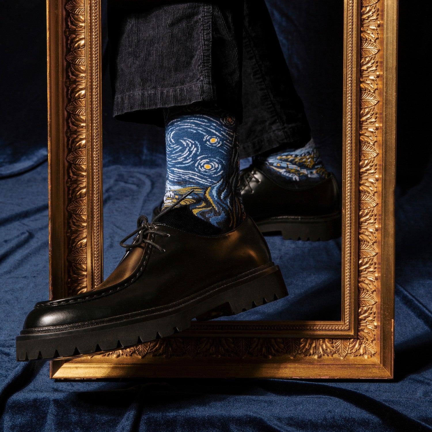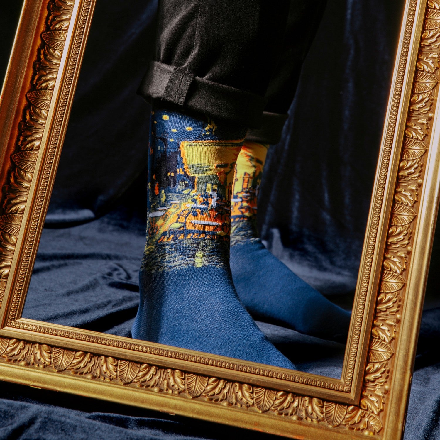 Dieses 3er-Pack nimmt dich mit durch Van Goghs nächtlichen Himmel. Von seiner ikonischen Sternennacht bis zum warmen Schein der Terrasse am Abend – jede Socke in dieser Kollektion fängt die Magie von Sternen, Licht und Dunkelheit ein, wie nur Van Gogh sie malen konnte.