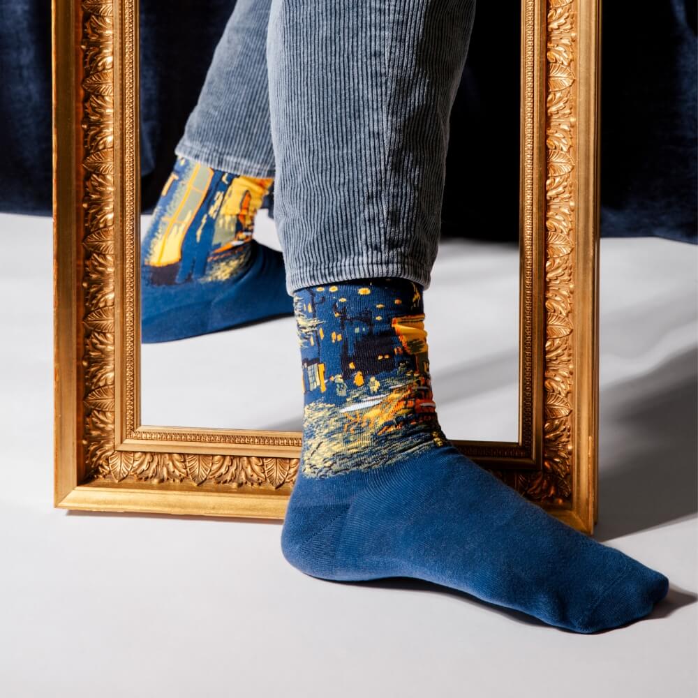 Das komplette Van Gogh-Erlebnis in einem Paket. Von seiner berühmtesten Sternennacht bis zur blühenden Mandelblüte – diese fünf Socken zeigen Van Goghs emotionale Kraft und einzigartige Pinselführung. Ein Muss für jeden wahren Kunstliebhaber.